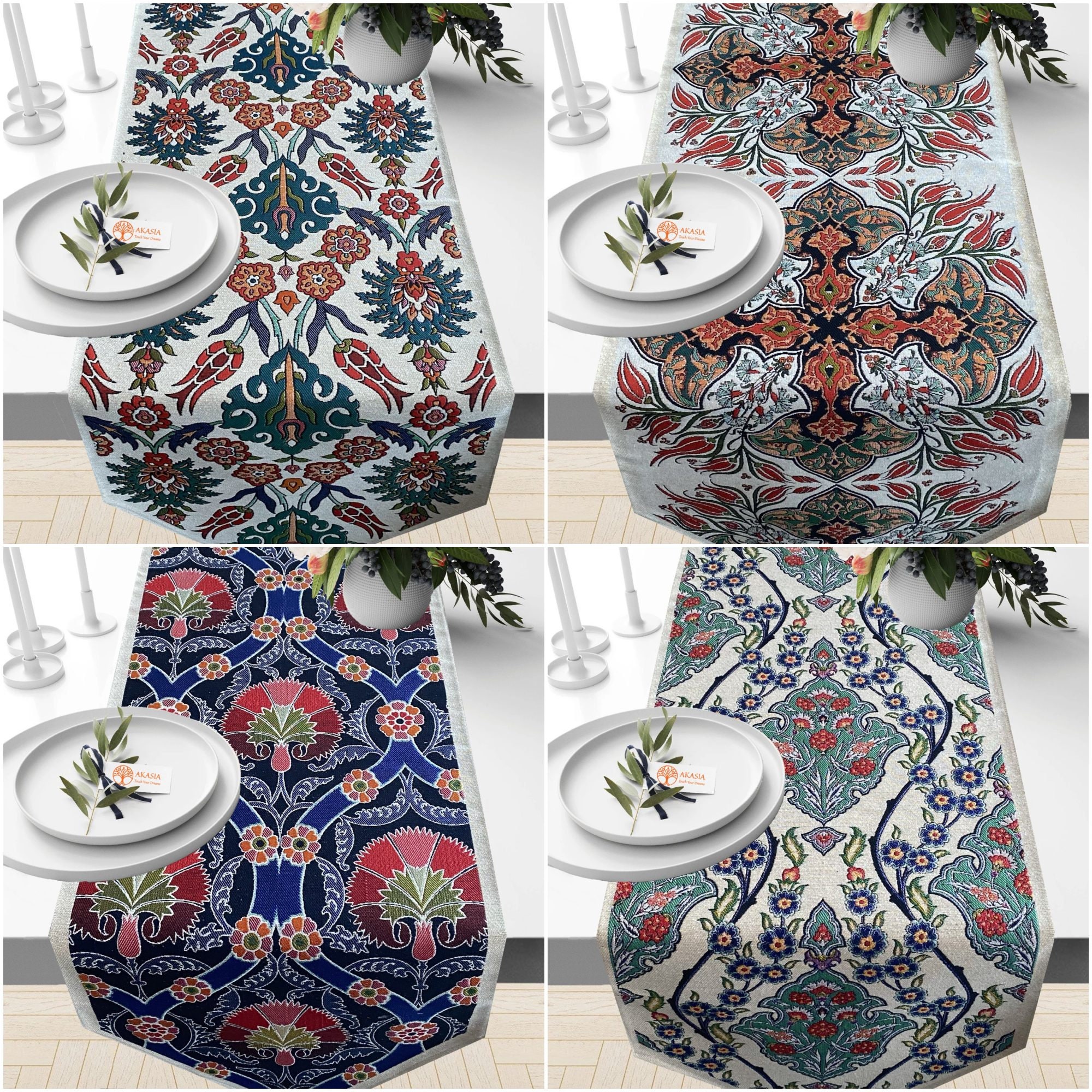 Buy Tile Pattern Table Runnertulip Tapestry Fabric Online In India Etsy